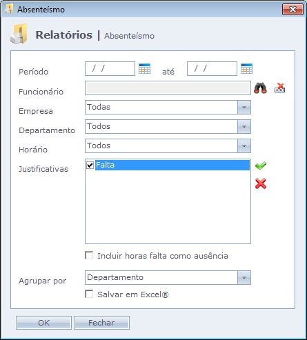 Agrupamentos disponíveis são: por Departamento, por funcionário e por horário