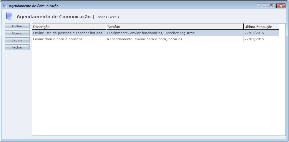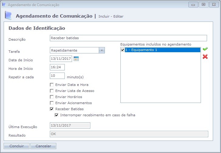 Agendamento de comunicação para os equipamentos cadastrados no sistema.