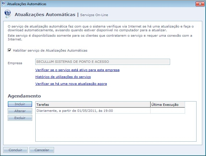 Habilitar serviço de Atualizações Automáticas: Habilita a utilização do serviço no Ponto Secullum 4.