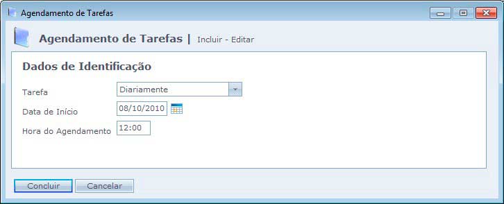 Hora do Agendamento: Hora que a tarefa será executada.