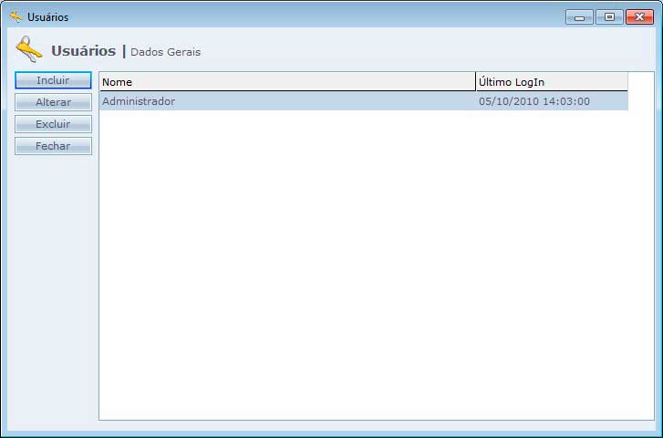 O Usuário Administrador está cadastrado como padrão no sistema, e não há nenhuma senha cadastrada para o mesmo. Para maior segurança, recomendamos que o administrador do sistema tenha uma senha cadastrada.
