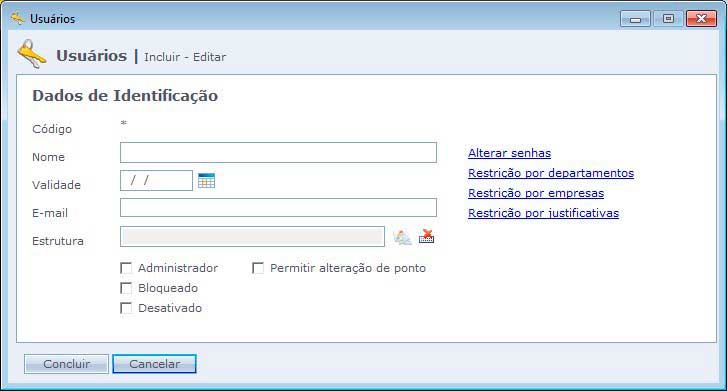 Código: Código do usuário. Utilizado pelo sistema para controle. Não preenchível.