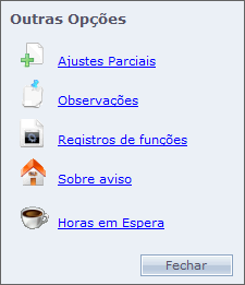Opções:Opções adicionais da tela de Cartão Ponto.