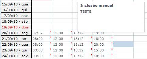 Se passar o mouse sobre o horário, será mostrado um pop-up com o motivo da inclusão manual.