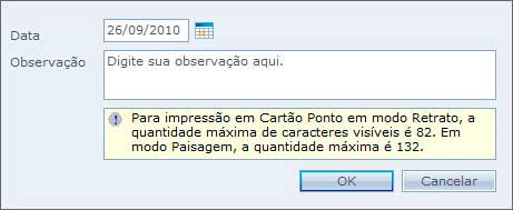 Observações: Descreva alguma observação. Este campo é mostrado na impressão do Cartão Ponto.