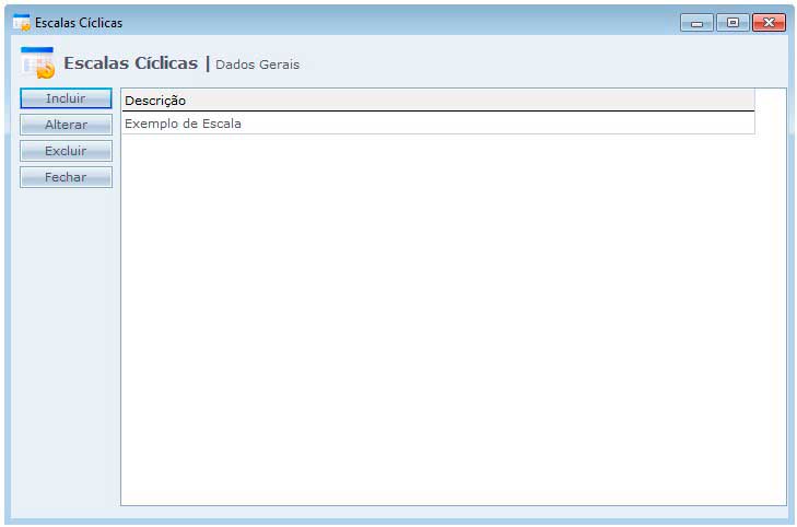 Data Base:É a data usada pelo sistema para iniciar a escala. Nesta data, o sistema irá começar a escala no 1o. ciclo.