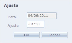 Ajuste: Valor do ajuste em horas. Podendo ser valor positivo ou negativo.