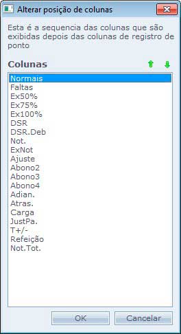 Alterar ordem: Ordem de exibição das colunas na tela de Cálculos. O sentido de sequência é do lado esquerdo para o lado direito da tela.