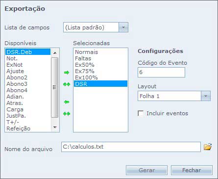 Permite exportar arquivo contendo os resultados de um período escolhido com a finalidade de suprir a folha de pagamento para cálculo das horas processadas.