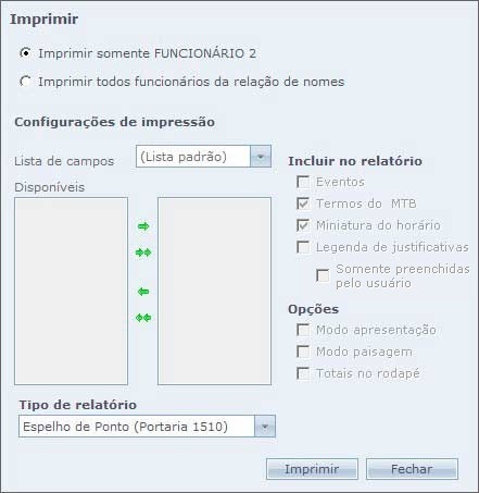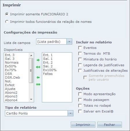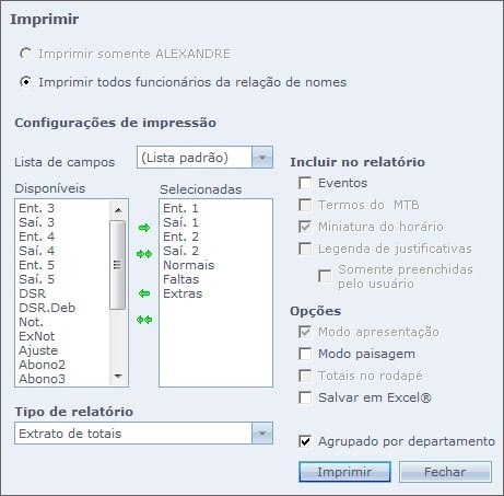 Imprimir somente <funcionário selecionado na tela de Cálculos>: Gera relatório somente do funcionário selecionado na tela de Cálculos.
