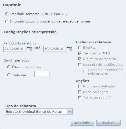 Termos do MTB: Impressão dos Termos do Ministério do Trabalho no rodapé do relatório.