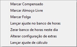 Ao clicar com o botão direito do mouse sobre um dia com marcações na tela de Cálculos. O seguinte menu é habilitado: