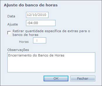 Observações: É exibido automaticamente o texto 'Encerramento do Banco de Horas'.