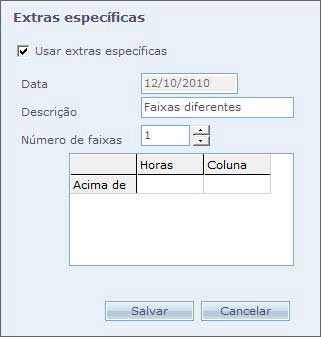 Alterar configuração de extras: Permite alterar as configurações de extra para o dia selecionado.