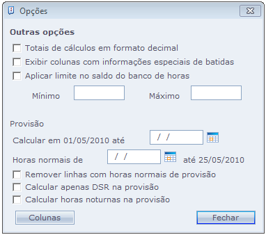 Horas normais de ... até <data>: Período que será feita a provisão de cálculo.