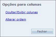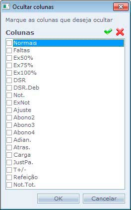 Ocultar/Exibir colunas: Oculta as colunas selecionada na tela de Cálculos.