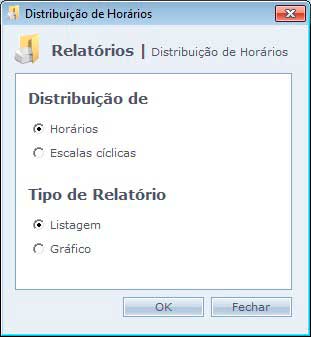 Relatório de distribuição dos horários de trabalho em forma de lista ou gráfico.