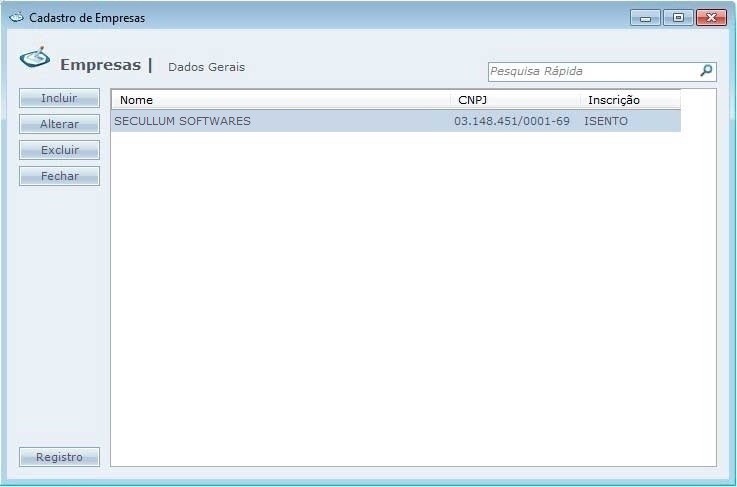 Exclui: Exclui a empresa selecionada