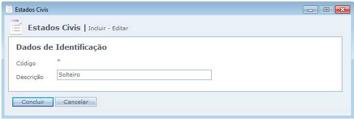 Descrição: Descreva o nome do estado civil