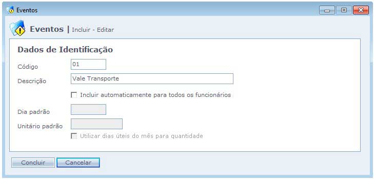 Código:Ao informar o Código, você deve informar o mesmo código do evento usado no programa de Folha de Pagamento, pois esta é a chave para a comunicação dos mesmos.