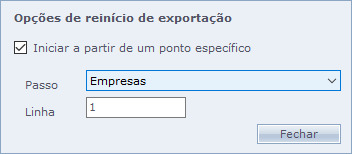 Obs.: Se esta opção não for selecionada, a exportação iniciará a partir do primeiro passo.