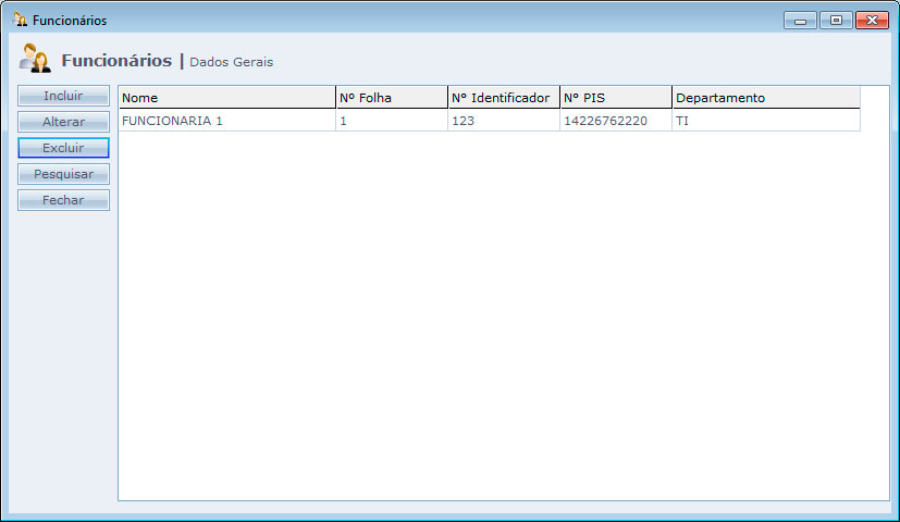 Nesta tela são listados todos os funcionários cadastrados no sistema. Clique em Pesquisar para localizar funcionário.