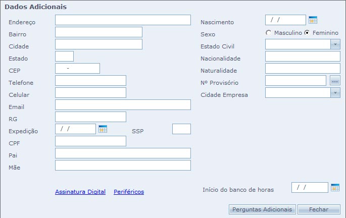 Perguntas Adicionais:Caso ainda, você precise de mais informações sobre o funcionário, você pode cadastrar novas perguntas clicando em Perguntais Adicionais. Vá até Perguntas Adicionais para saber mais sobre.