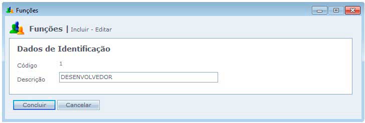 Ao clicar em Incluir, temos um campo onde você cadastra o nome da função.