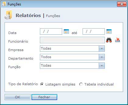 Listagem simples: Exibe lista de todas as funções utilizadas no período. Agrupado por função.