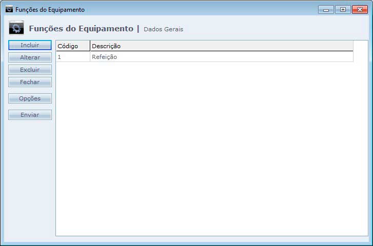 Cadastro de funções do equipamento. Após cadastrá-las, deve-se enviar as mesmas para o equipamento.