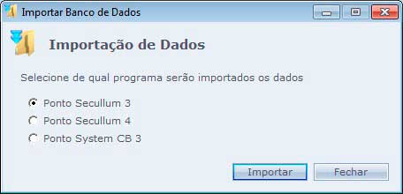 Selecione de qual sistema deseja importar o banco de dados e clique em Importar.