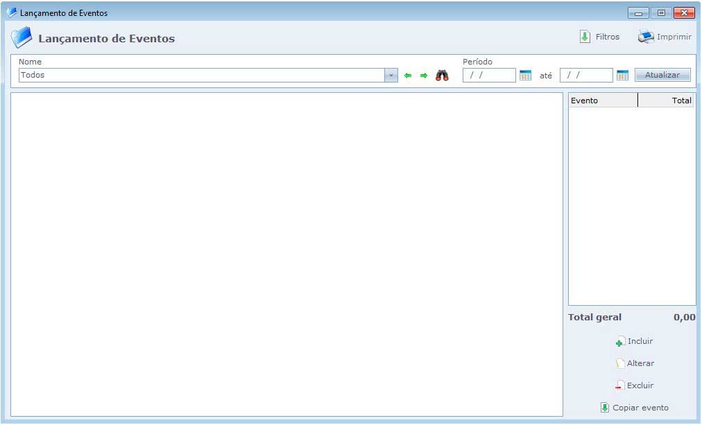 Valor Total: Valor de total dos eventos lançados. (Quantidade X Valor Unitário)