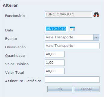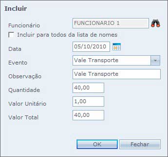 Quantidade: Quantos eventos serão lançados para o funcionário.