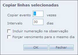 Copiar evento ... vezes: Número de vezes que o evento será copiado.
