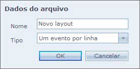 No campo Nome do arquivo, estão listados os layouts que estão cadastrados no sistema. Por padrão o sistema vem com quatro layouts configurados, são eles: