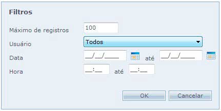 Usuário: Seleção do usuário cujos registros serão mostrados no Log de Informações.