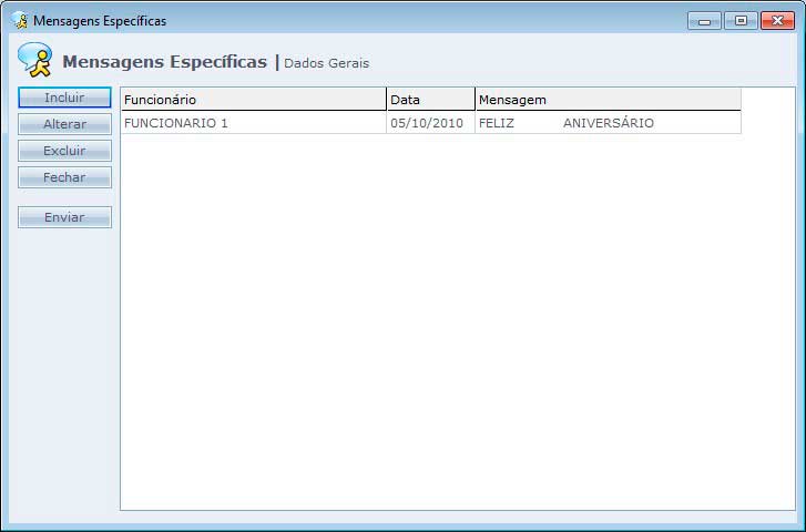 Permite cadastrar mensagens e aviso no display do equipamento, para uma determinada pessoa.