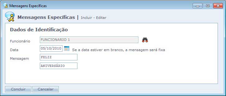 Funcionário: Funcionário que será cadastrada a mensagem.