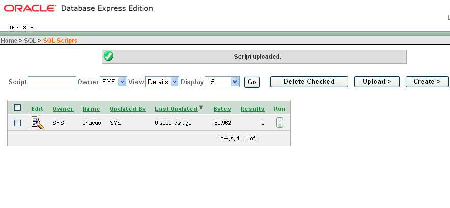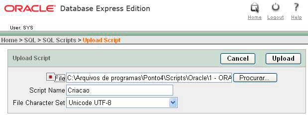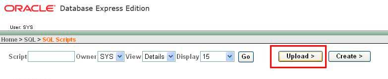 o Clique em 'UPLOAD' para subir os scripts até a página do Oracle.