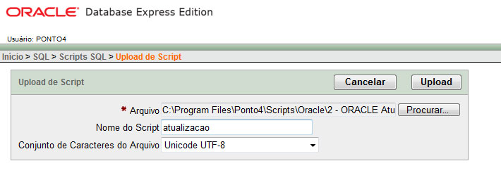o Clique em UPLOAD para subir os scripts até a página do Oracle.