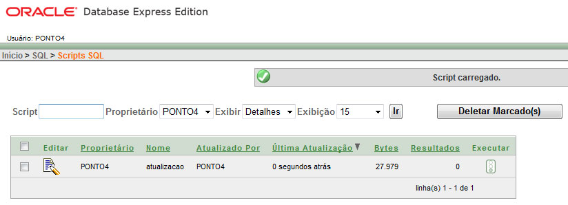o Selecione o script de atualização. Após selecioná-lo clique no semáforo, na coluna Executar.