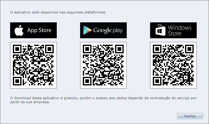 Link para download do aplicativo: Exibe os links para download do aplicativo em todas as lojas em que ele está disponível.