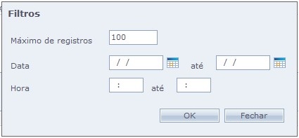 Na tela de filtros é possível fazer uma busca mais específica de tarefas realizadas, informando o número máximo de registros, por período e hora.