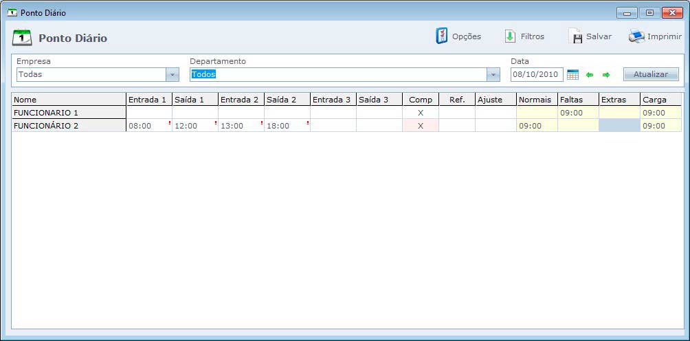 o Com Movimento: Exibe todos os funcionários que tiveram alguma marcação no dia.