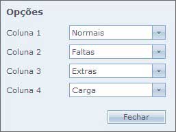 Seleção das 'Colunas de exibição' na tela de Ponto Diário. Será mostrado os totais das colunas selecionadas.