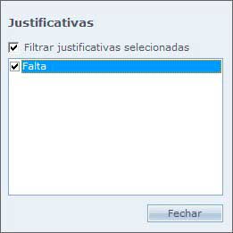 Justificativas: Exibe somente funcionários que tiverem lançado no dia selecionado, a justificativa selecionada.