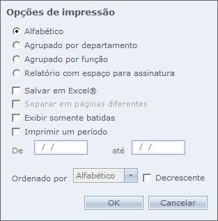 o Dia em branco: Exibe somente funcionários que não tiveram nenhuma marcação no dia.