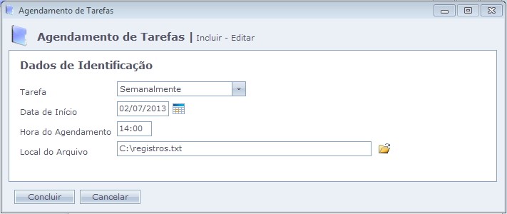 Importante: O sistema não precisa estar em execução no momento do recebimento do arquivo, mas é necessário que o Gerenciador de Tarefas esteja.