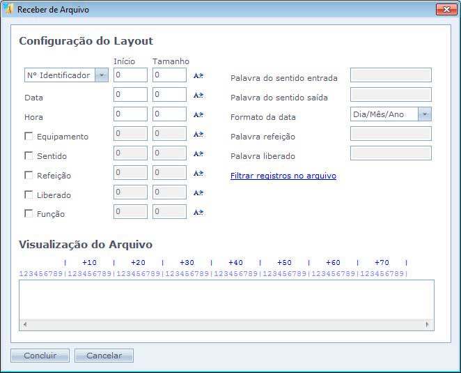 Nº Identificador: Posição inicial e tamanho no arquivo texto, do número identificador do funcionário. Quando houver zeros à esquerda, deverão ser incluídos na configuração.