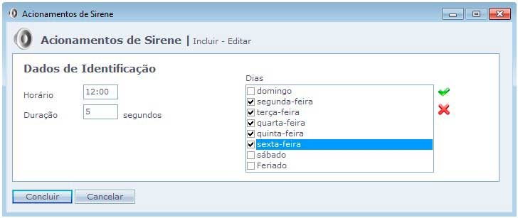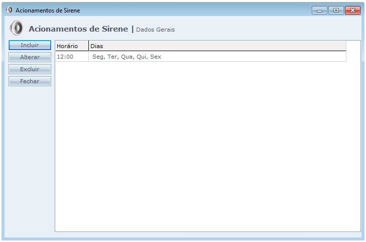 Cadastro de acionamentos de Sirenes, a serem enviados para o equipamento.